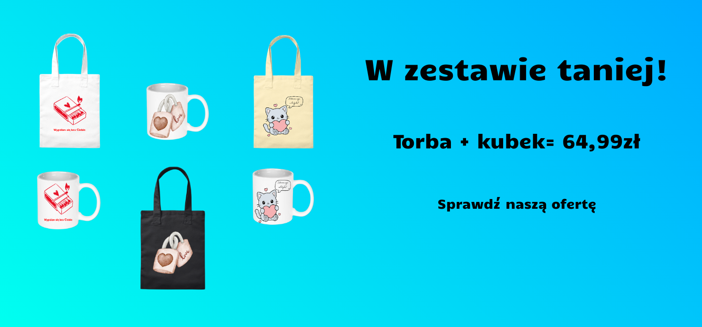 Wybierz spośród modeli na Walentynki i złap swoją torbę, kubek lub zestaw w świetnej cenie. Ilość sztuk ograniczona!