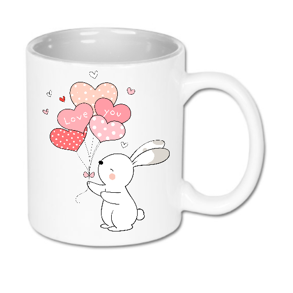 Czasami jedno „Love you” znaczy więcej niż tysiąc słów, zwłaszcza gdy towarzyszy mu tak uroczy kompan. Nasz kubek ceramiczny „Królik z Balonami” to idealny sposób na wyrażenie uczuć w nienachalny i niezwykle słodki sposób. Ilustracja przedstawia małego, białego króliczka trzymającego pęk różowych i czerwonych balonów w kształcie serc, na których widnieje czuły napis „Love you”.