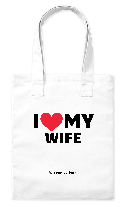 Szukasz praktycznego, a zarazem zabawnego prezentu dla swojego męża? Nasza torba z kultowym hasłem „I ❤️ MY WIFE” to strzał w dziesiątkę! Klasyczny, duży napis z czerwonym sercem został wzbogacony o uroczy i dowcipny dopisek na dole: „*prezent od żony”. To idealny sposób, aby Twój mężczyzna z dumą (i uśmiechem) manifestował swoje uczucie podczas codziennych zakupów czy wyjść na miasto.