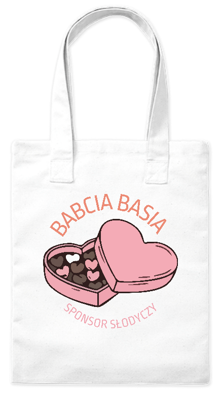 Szukasz zabawnego i praktycznego prezentu dla Babci, która zawsze ma w zanadrzu coś słodkiego? Nasza torba z grafiką bombonierki i napisem "Sponsor Słodyczy" to strzał w dziesiątkę! Co najważniejsze, jest to produkt personalizowany – nad napisem możemy umieścić imię Twojej Babci (np. Babcia Basia, Babcia Marysia, Babcia Krysia), czyniąc ten prezent jedynym w swoim rodzaju.